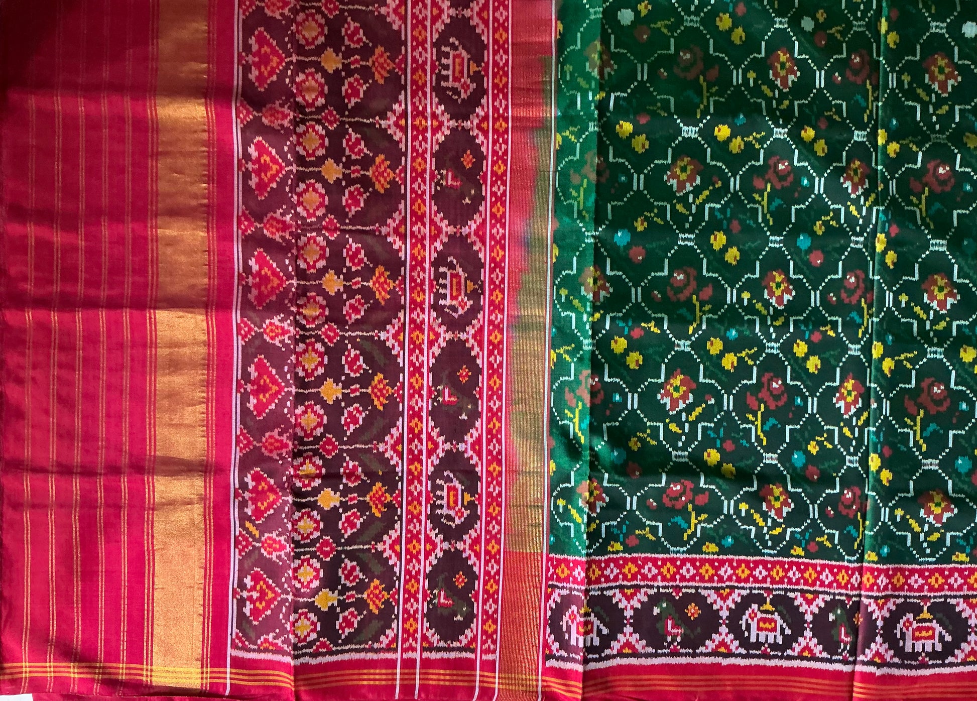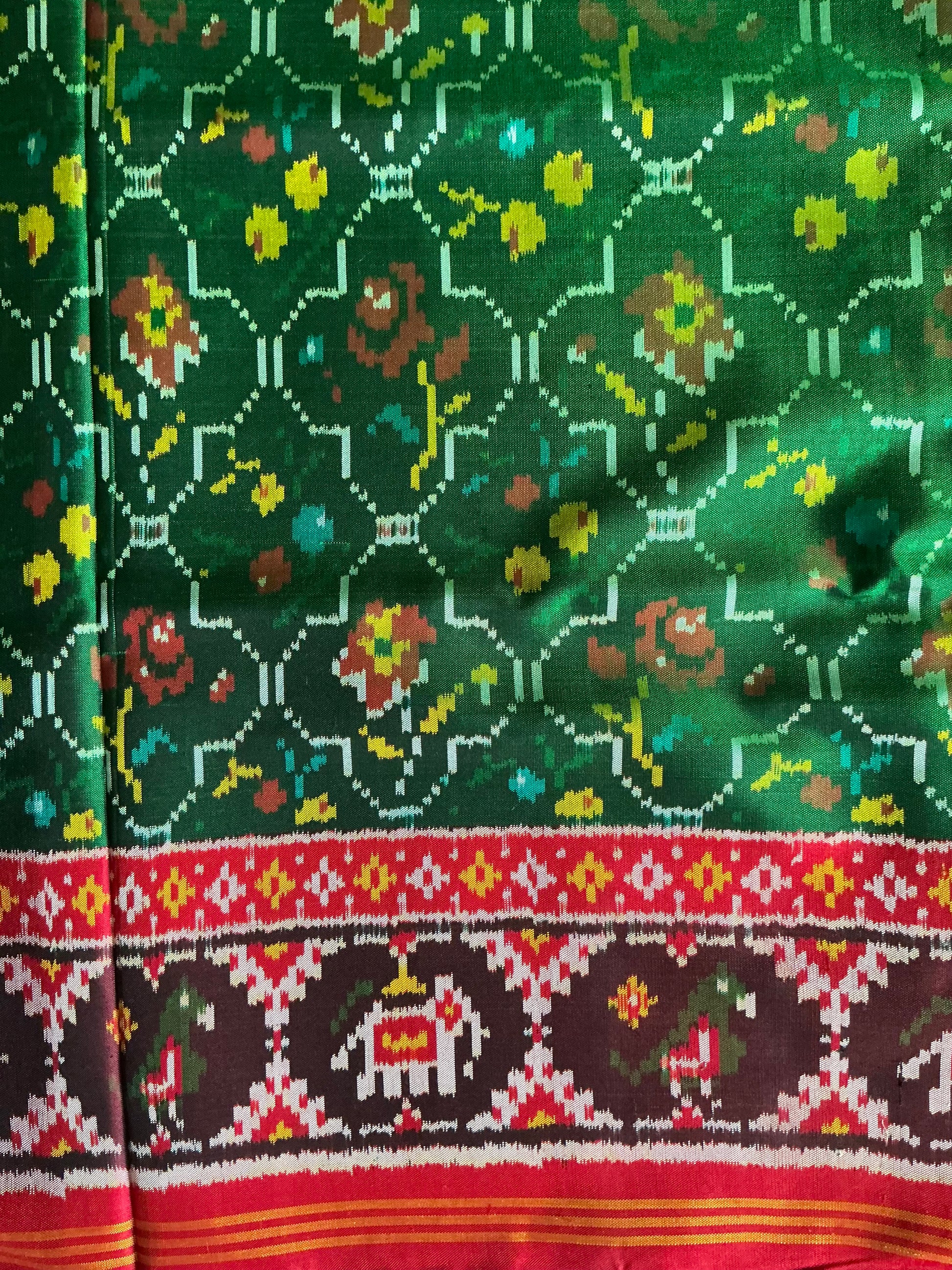 Brand new green Tal fancy Tal in rose Patan Patola First Copy Semi Ikkat Patola Saree.