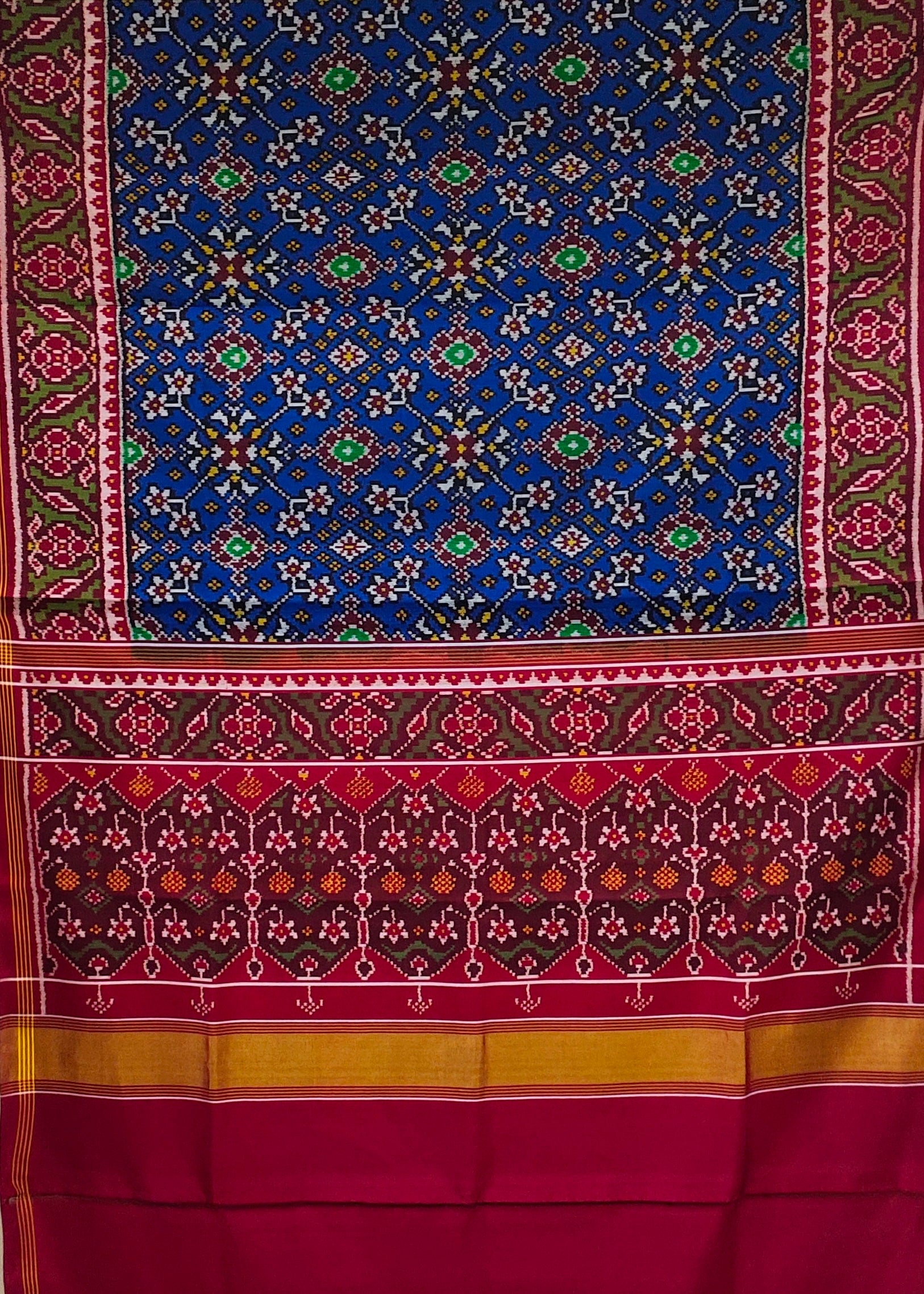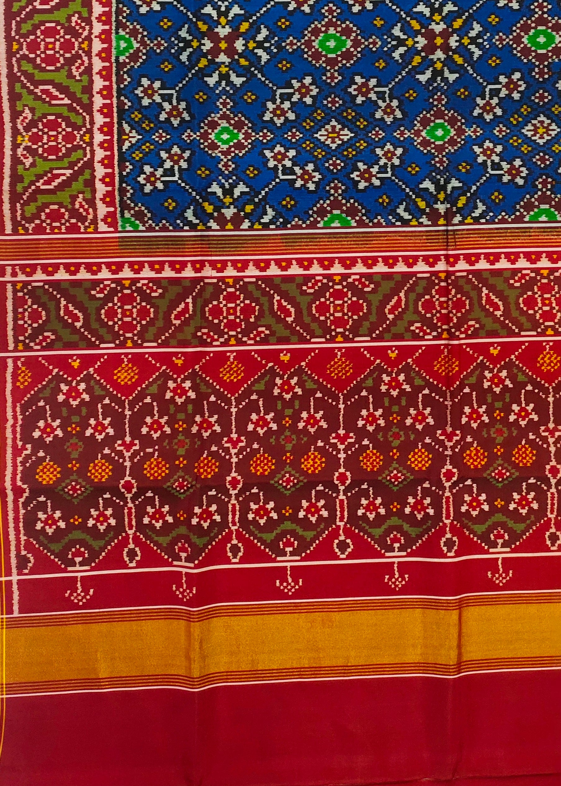 Navaratan Blue Tal Patan Patola First Copy Semi Ikkat Patola Saree
