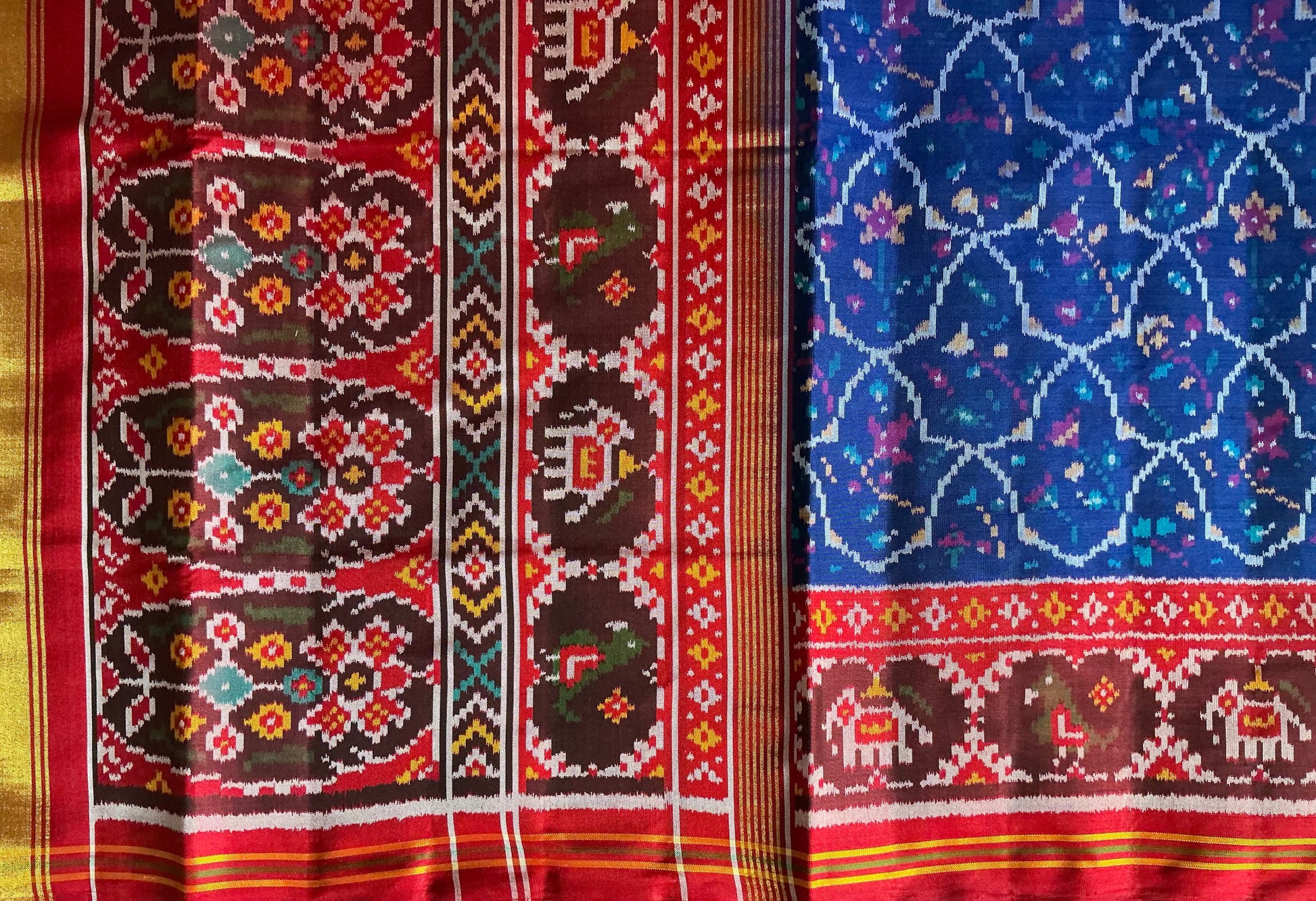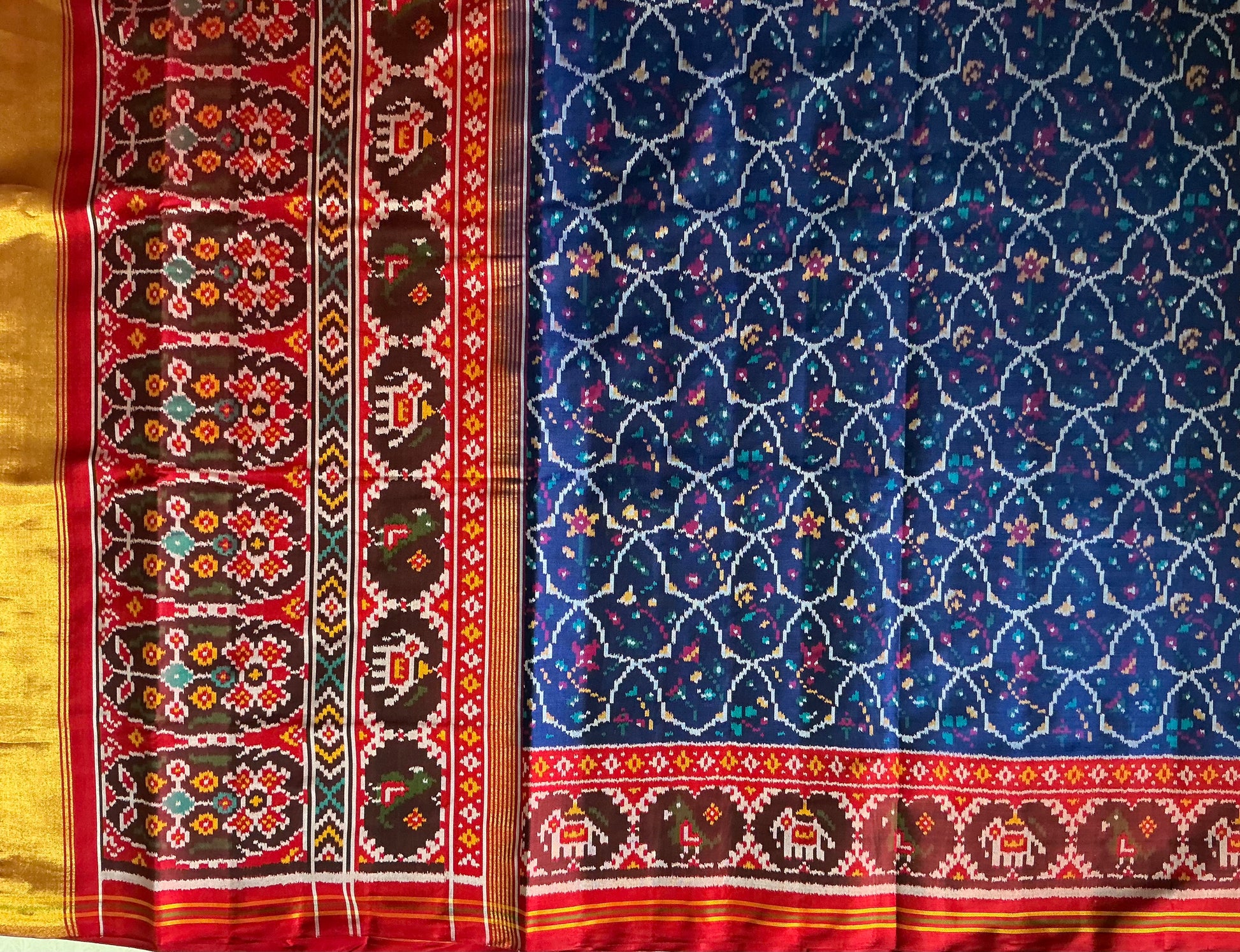 New fancy blue colour Patan Patola First Copy Semi Ikkat Patola Saree