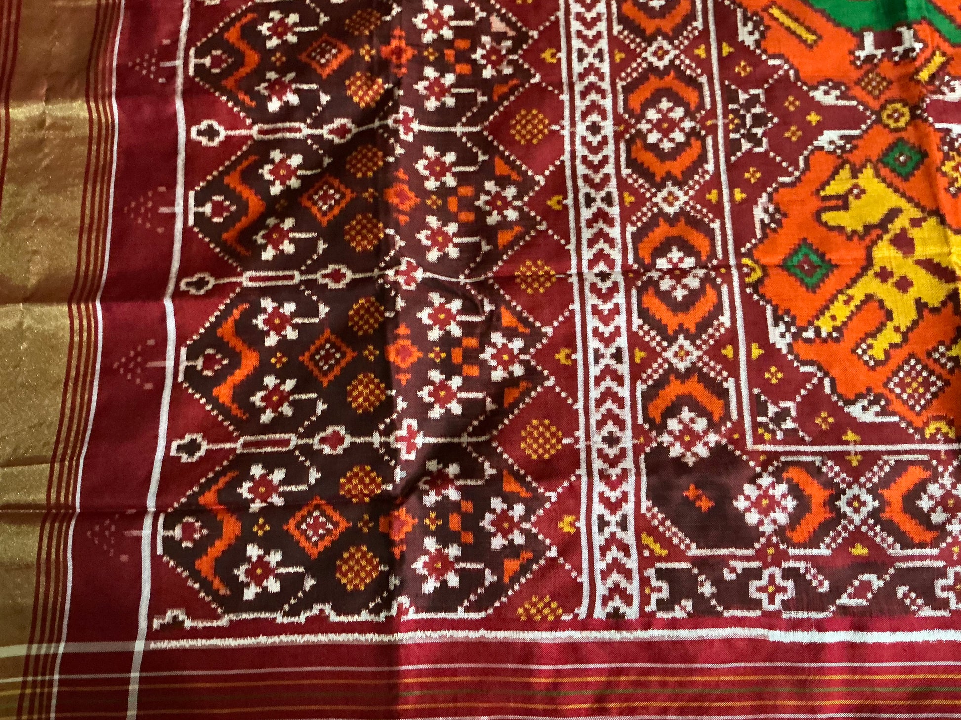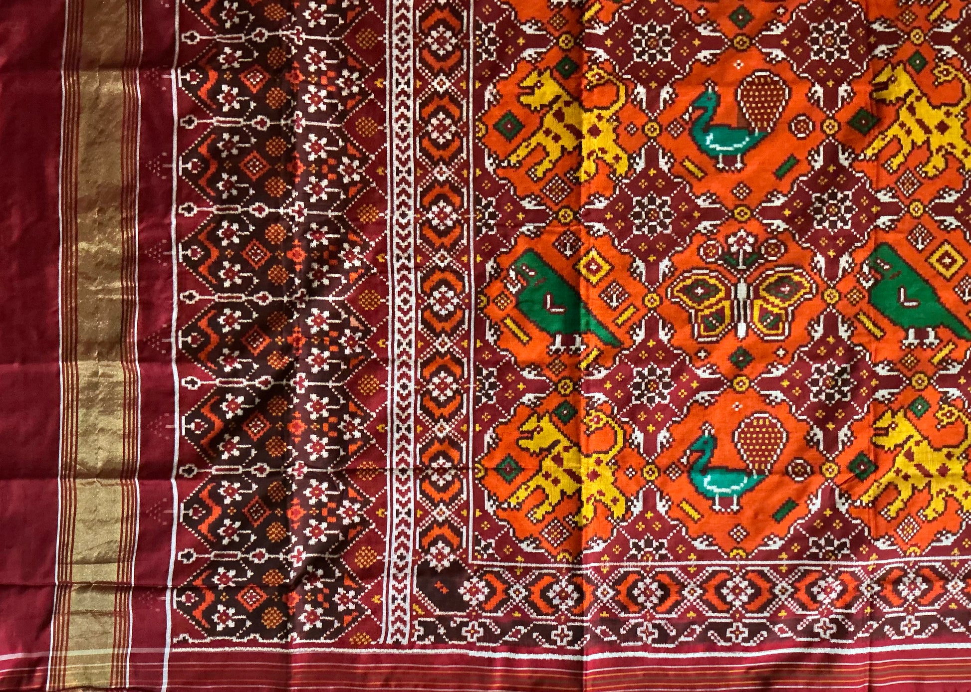 Original Double Ikkat Silk Patola Saree,with Orange colour Tal.